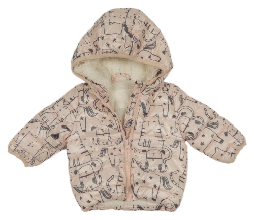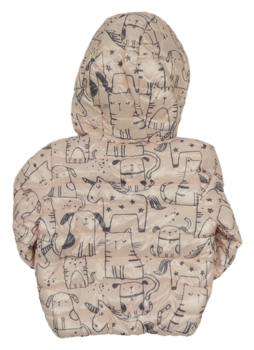 • Svetloružová prešívaná šušťáková zimná bunda so zvieratkami a kapucňou F&F