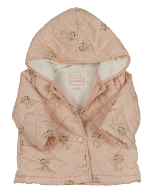 • Svetloružová šušťáková prešívaná zateplená bunda s kvietkami a kapucňou Bluezoo