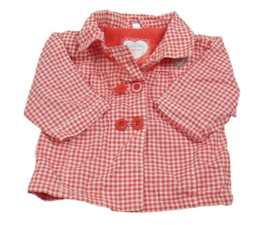 • Červeno-bílý kostkovaný plátěný podzimní kabátek so srdiečkom s flitrami a golierikom