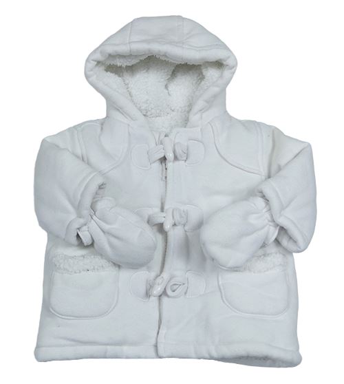 Bílý teplákový zateplený kabátek s kapucí + rukavice Mothercare