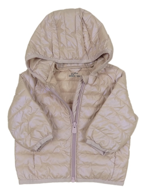 Pudrová metalická prešívaná ľahká zateplená bunda s kapucňou