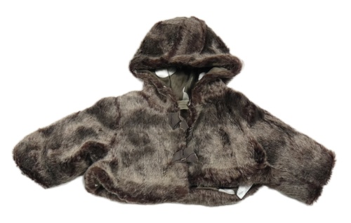 Hnědý kožešinový podšitý kabátek s kapucňou Mamas&Papas