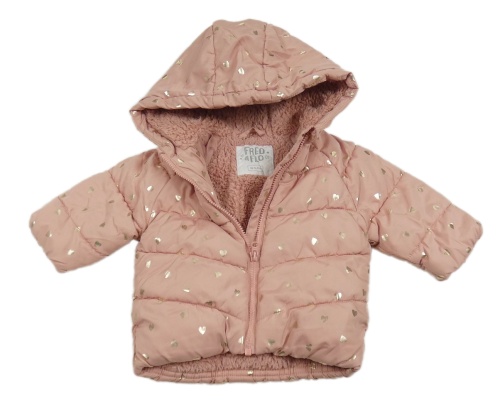 Svetloružová šušťáková zateplená bunda so srdiečkami a kapucňou F&F