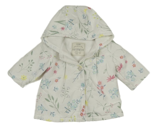Biela šušťáková zateplená bunda s kvietkami a kapucňou George