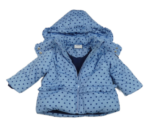 Modrá šušťáková zimná bunda so srdiečkami a kapucňou Primigi