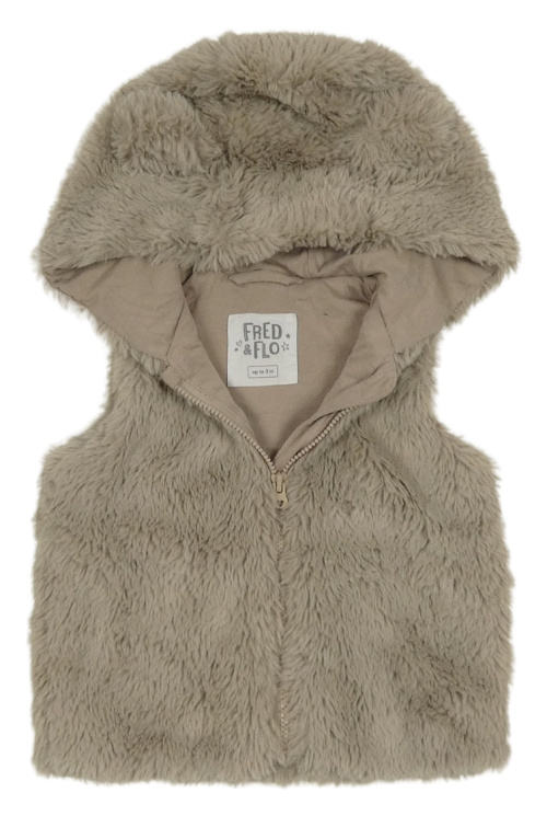 Šedobéžová kožušinová podšitá vesta s kapucňou s uškami F&F
