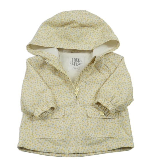 Smetanovo-žltá kvetovaná šušťáková jarná bunda s kapucňou F&F