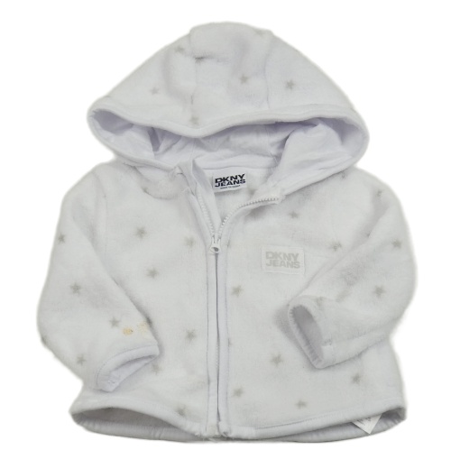 • Biela plyšová bunda s hviezdičkami a nášivkou a kapucňou DKNY