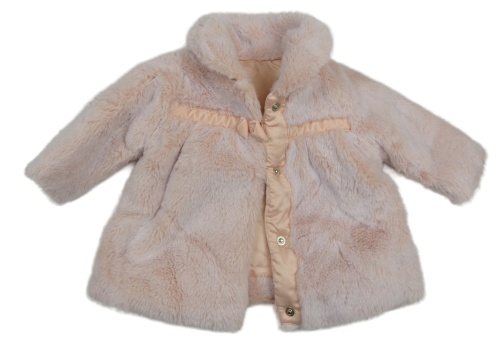 Svetloružový kožušinový zateplený kabát s mašlou a golierikom Nutmeg