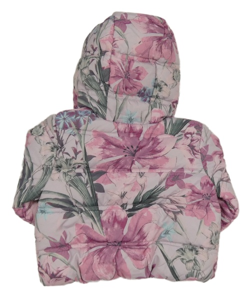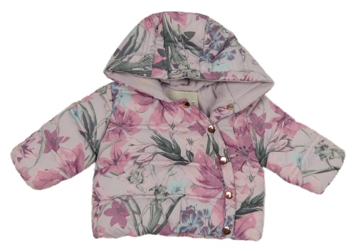 Fialová šušťáková prešívaná zimná bunda s kvetmi a kapucňou Tu