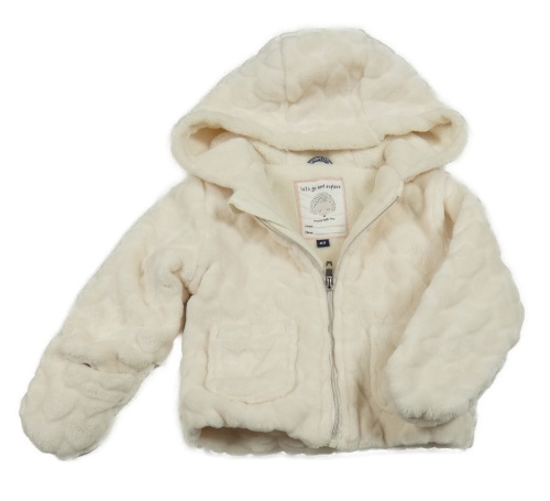 Smotanová kožušinová bunda so srdiečkami a kapucňou C&A
