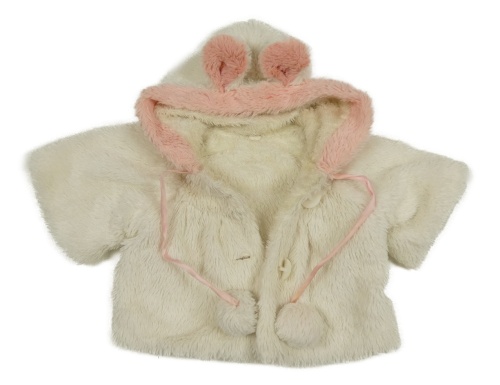 Smetanový chlupatý kabátek s bambulemi a kapucňou
