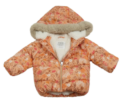 Lososová kvetinová šušťáková zimná bunda s kapucňou F&F