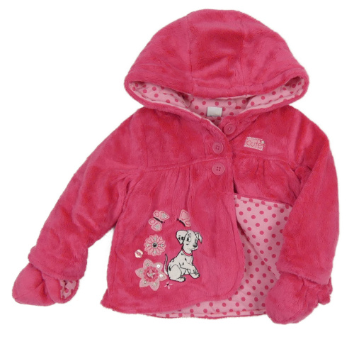 • Tmavorůžový plyšový zateplený kabátek s dalmatinkem a kapucí + rukavice Disney