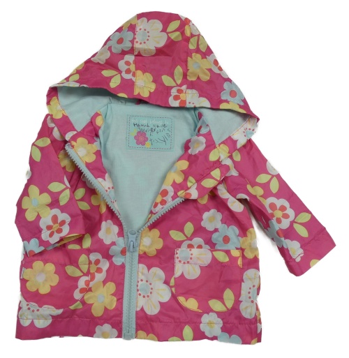 Ružová kvetovaná šušťáková jarná bunda s kapucňou