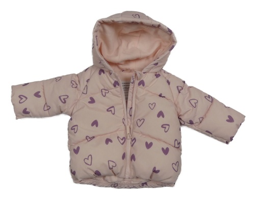 Svetloružová šušťáková zimná bunda so srdiečkami a kapucňou Primark