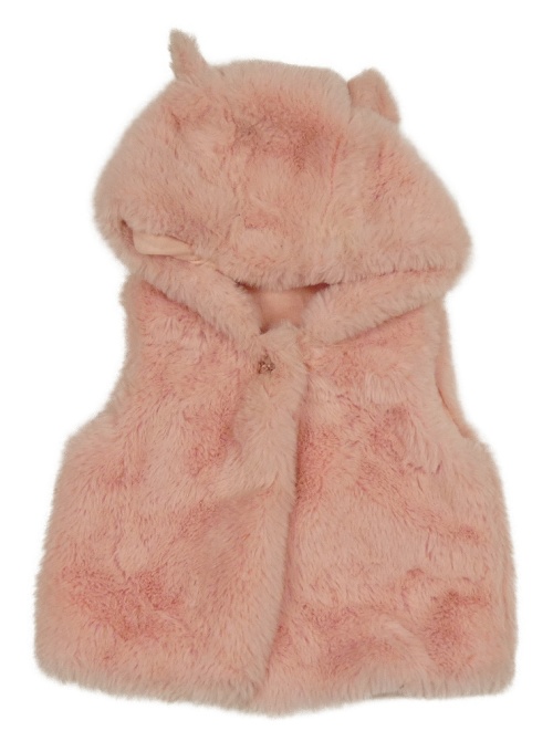 Svetloružová kožušinová podšitá vesta s kapucňou