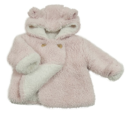 Světlerůžový chlupatý zateplený kabátek s kapucňou