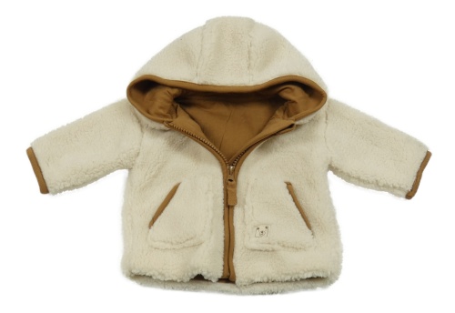 Smotanová huňatá podšitá bunda s medvedíkom a kapucňou Nutmeg