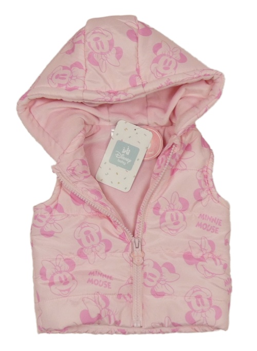 • Nové - svetloružová prešívaná šušťáková zateplená vesta s Minnie a kapucňou Disney