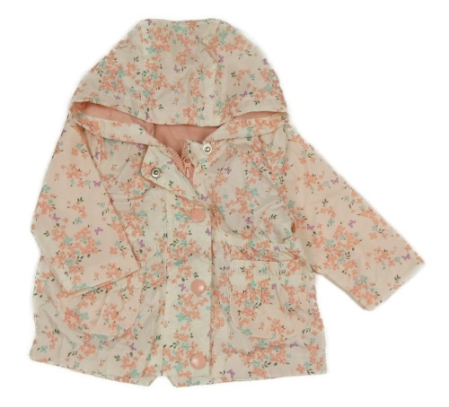 Smetanovo-ružová kvetovaná šušťáková jarná bunda s kapucňou