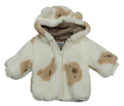 Smotanová huňatá zateplená bunda s medvedíkom a kapucňou F&F