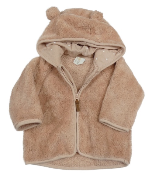 Pudrová chlpatá bunda s kapucňou s uškami H&M