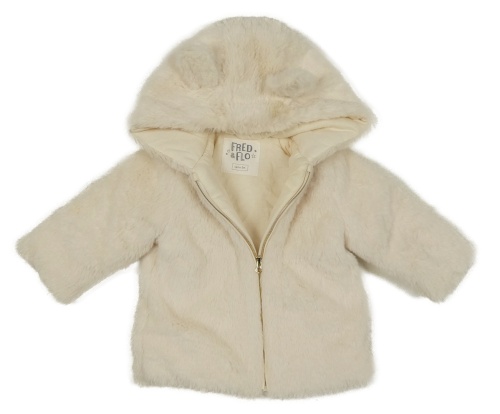 Smotanový kožušinový zateplený kabát s kapucňou F&F