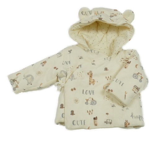 • Smetanový zavinovací zavazovací zateplený kabátek s obrázky a kapucňou s uškami George