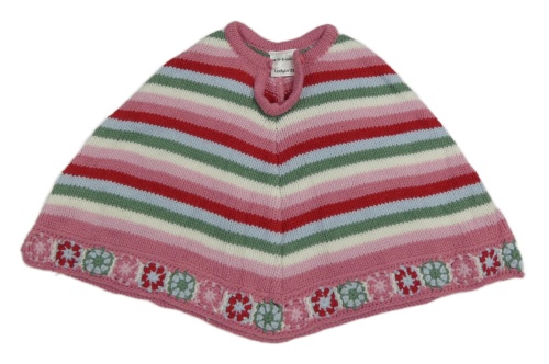 Bielo-kaki-ružové pruhované pletené pončo Ladybird