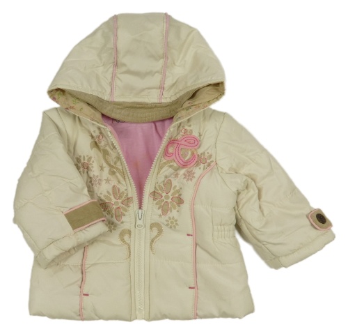Béžová šušťáková zateplená bunda s kvetmi a kapucňou