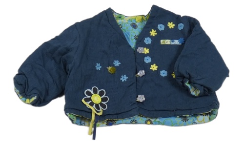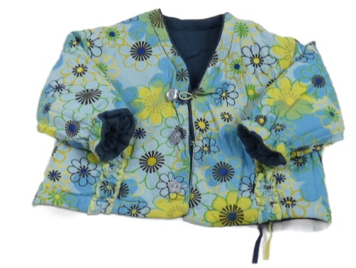 Světlemodrý květovaný zateplený oboustranný kabátek