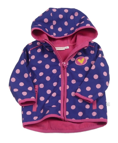 Tmavomodrá bodkovaná á softshellová bunda s nášivkou a kapucňou Liegelind
