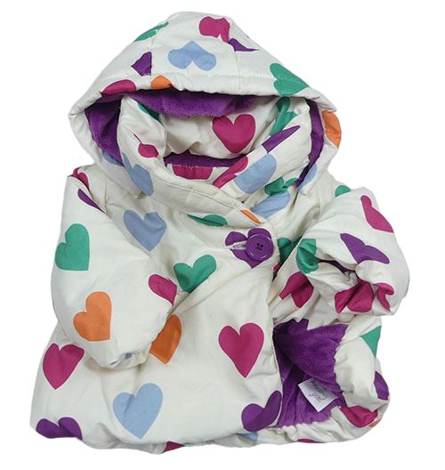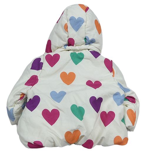 Smotanová šušťáková zimná bunda s farebnými srdiečkami a odopínacíá kapucňou John Lewis