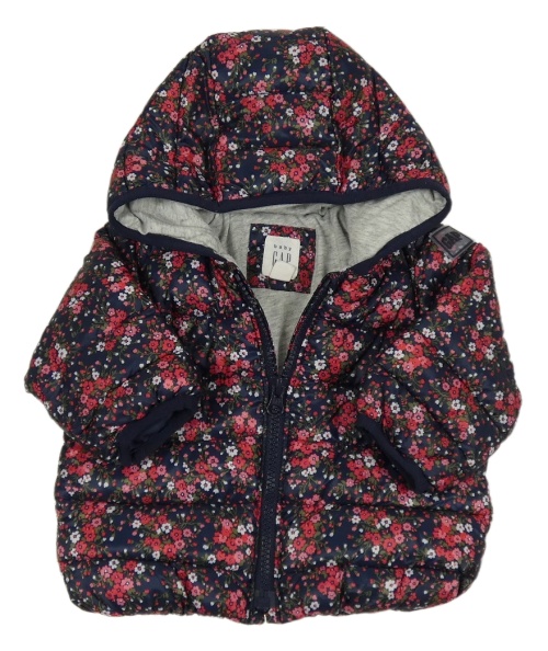 Tmavomodrá kvetovaná šušťáková zimná bunda s kapucňou GAP