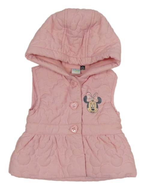 Ružová prešívaná šušťáková zateplená vesta s Minnie a kapucňou Disney