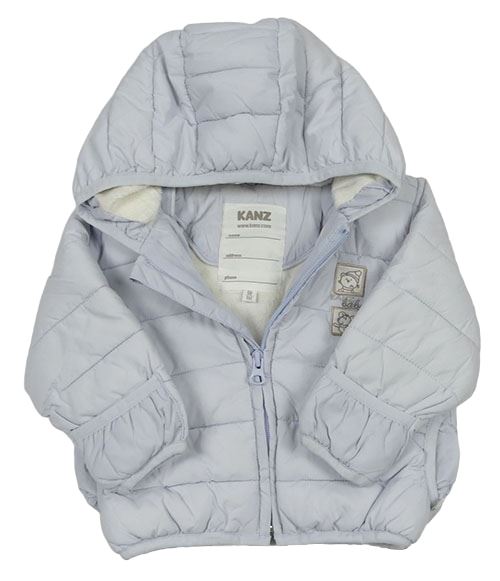 • Svetlomodrá prešívaná šušťáková zimná bunda s nášivkou a kapucňou KANZ