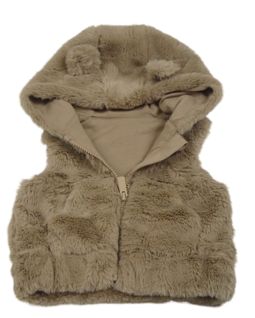 Hnedá kožušinová podšitá vesta s kapucňou Dunnes