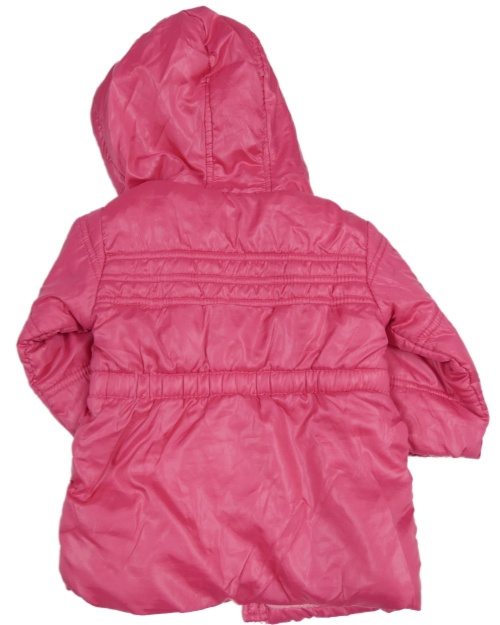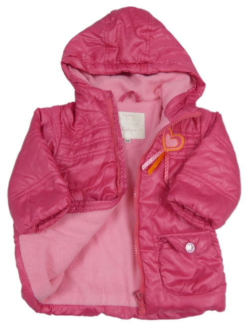 Ružová šušťáková prešívaná zimná bunda so srdiečkami a kapucňou