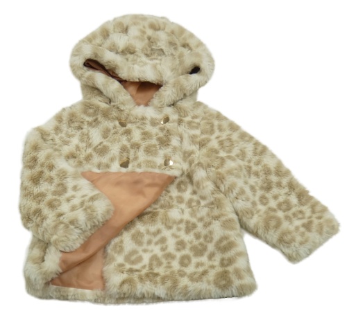 Smetanovo-béžová kožušinová podšitá bunda s leopardím vzorom a kapucňou