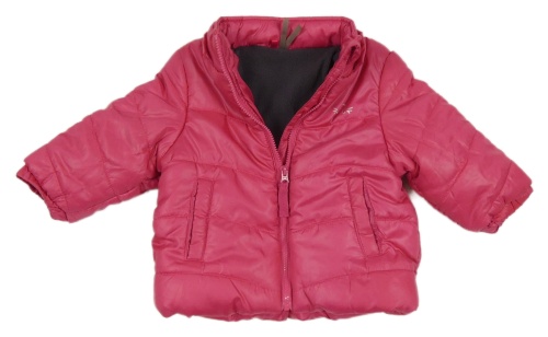 Malinová šušťáková zimná bunda s potlačou orchestra