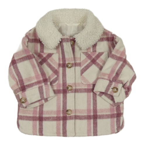 Světlebéžovo-ružovo-vínová kockovaná vlnená košeľová bunda F&F