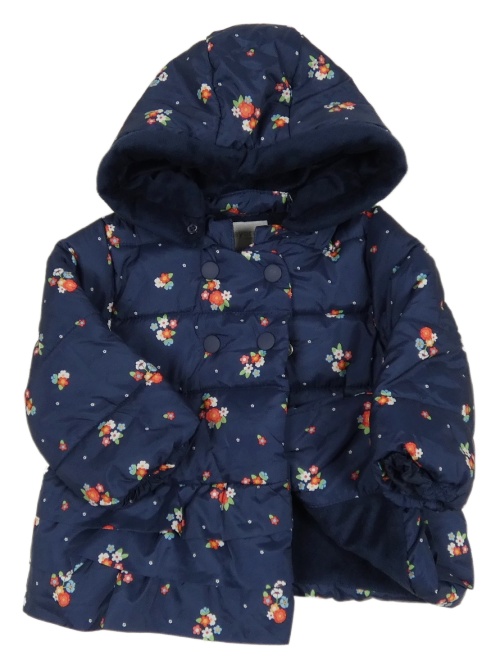 Tmavomodrá kvetovaná šušťáková zateplená bunda s kapucňou Mayoral