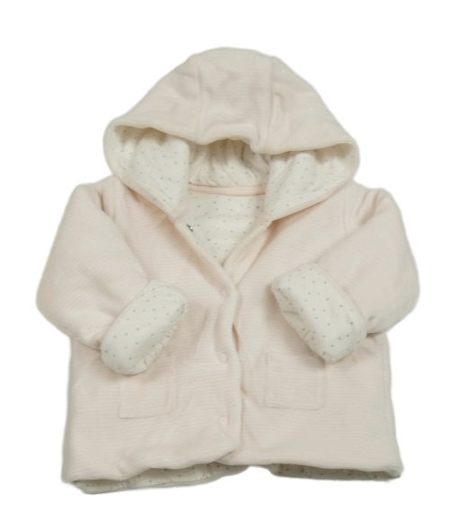 Světlerůžovo-bílý pruhovaný sametový zateplený kabátek s kapucňou M&S
