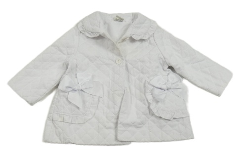 Biely prešívaný podšitý kabát s mašľami a golierikom Prety Originals