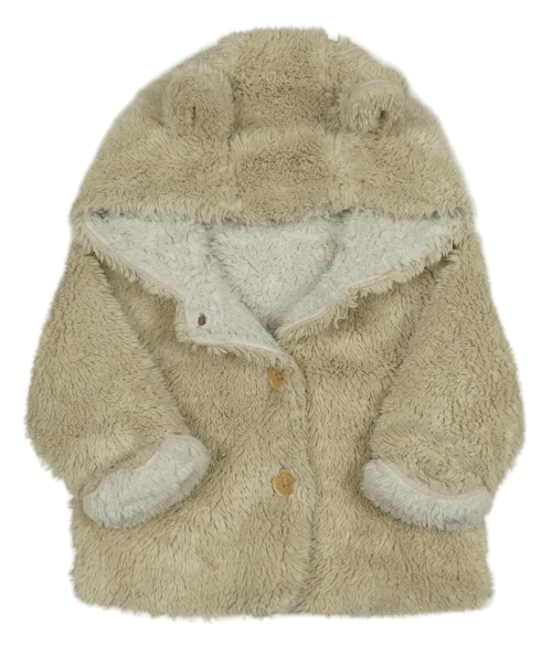 Svetlobéžová chlpatá zateplená bunda s kapucňou s uškami Matalan
