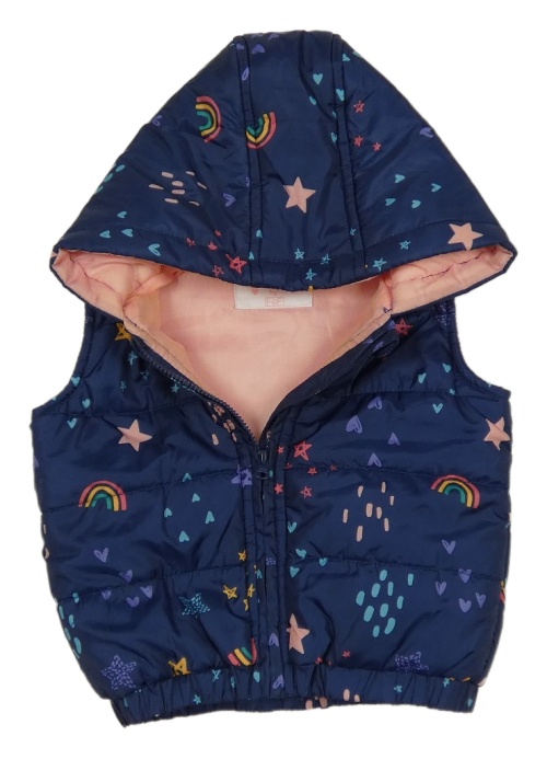 Tmavomodrá šušťáková zateplená vesta s hviezdami a kapucňou Fat Face