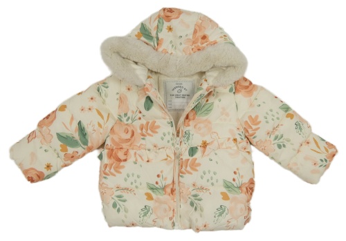 Smotanová-korálová kvetovaná šušťáková zimná bunda s kapucňou George