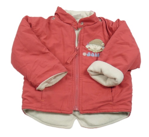 Jahodová šušťáková zateplená bunda s dievčatkom