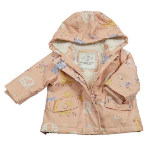 Broskvová nepromokavá zateplená bunda so zvieratkami a kapucňou George